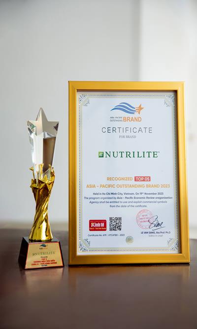 Giải thưởng Top 5 Thương hiệu Tiêu biểu Châu Á – Thái Bình Dương 2023 nhằm tôn vinh những thương hiệu nổi bật trong khu vực, có đóng góp cho quyền lợi khách hàng, thúc đẩy kinh tế quốc gia trong giai đoạn hội nhập và phát triển. Giải thưởng đã được trao cho Nutrilite – nhãn hiệu thực phẩm bổ sung dinh dưỡng, bảo vệ sức khỏe và vitamin bán chạy số 1 thế giới, theo dữ liệu về quy mô thị trường toàn cầu năm 2022 của GlobalData.